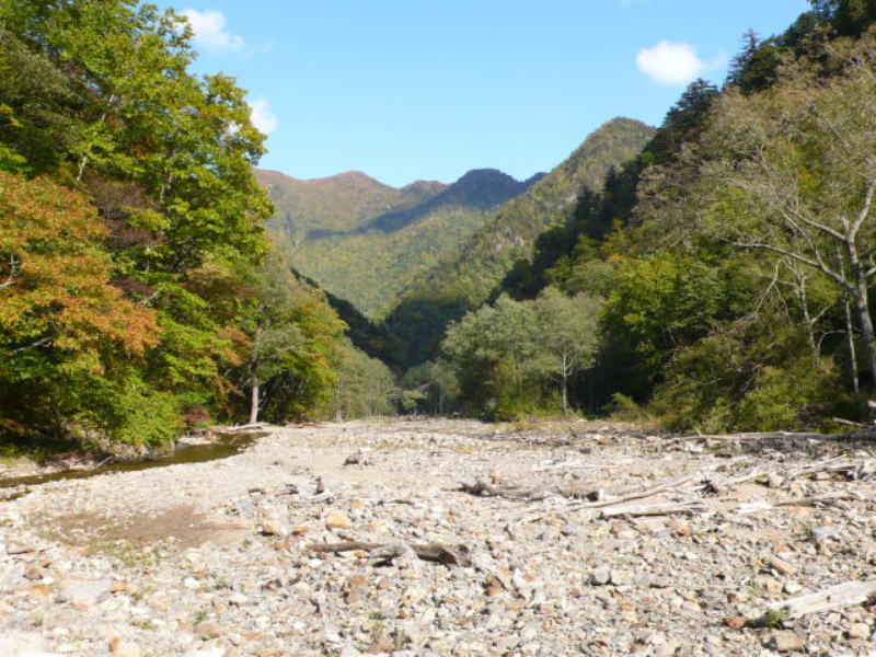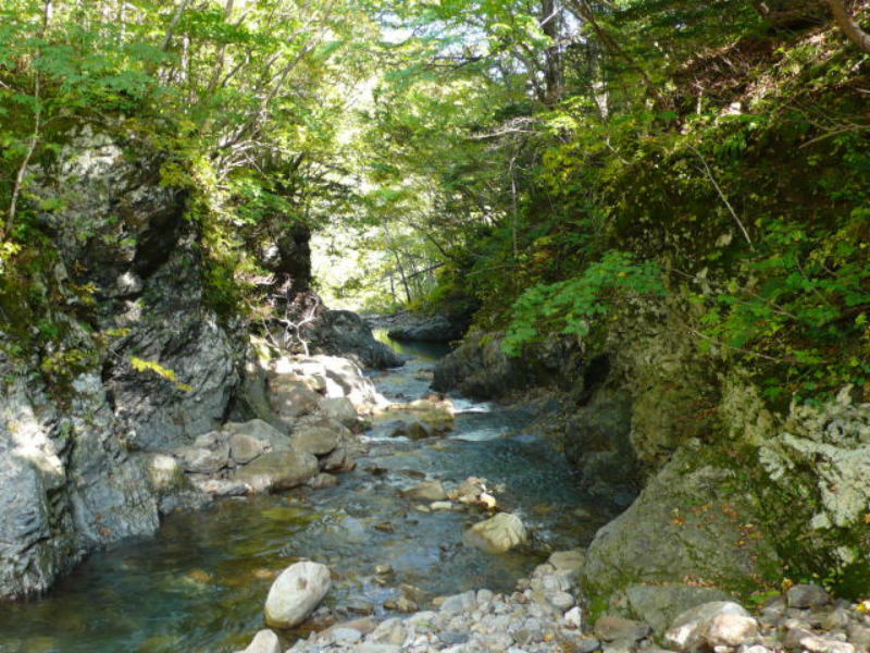 ひとたび増水すると暴れる沢