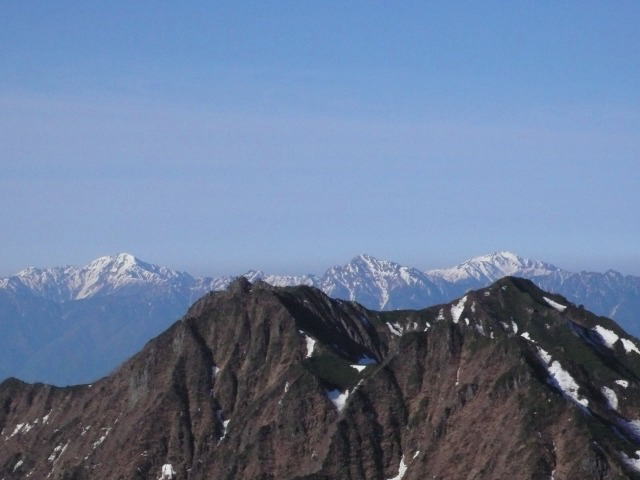 権現岳の後ろに南アルプスの山々