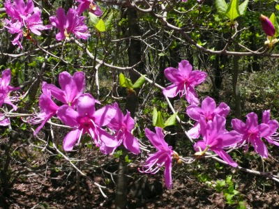 大泉清里スキー場の終点の岩場ではこの時期イワカガミが咲くのだが、管理の人に話を聞くと「5月だというのに季節外れの雪が降ったから花が咲くのが遅れているのかもしれない。」とのことであった。岩を積み上げた場所に行ってみるとわずかに花が咲いている。羽衣池まで下りれば何がしの花を見ることができるだろうと先に進んだが、ミツバツツジ以外に咲いているものはなく、たかね荘周辺のクリンソウも見つからなかった。停めてある車の回収のために清里からタクシーにきてもらい天女山に向かい、すぐさまヤマシャクヤクがあるという川俣渓谷を歩くが、目的の花が見つからない。下山後にまた標高を上げながら歩くのは、いくら花を見るためとはいえ非常につらい。「もういいか。」と踵を返し「たかねの湯」で汗を流す。施設の周囲に植えられたシャクナゲが余りにも綺麗だったので、品種を聞くと西洋種の「アンナ・ローズ」だとのこと。花はの山に咲く自然の花がいいが、そのようなこだわりがどうしたというんだと言わんばかりの美しさであった。