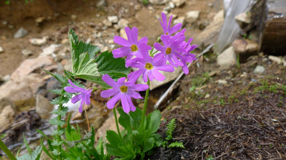 草原状の場所や樹林の際に色鮮やかなオオサクラソウが咲いている。ハクサンコザクラ同様、オオサクラソウは好きなサクラソウ科の花の一つだ。このグループのオオサクラソウの写真を取り、他のを取らないでいると、「え〜、そうなんですか。」というような声が聞こえそうだ。しばらく行って振り返ってみると、先ほど見た時よりさらに色鮮やかに感じる。