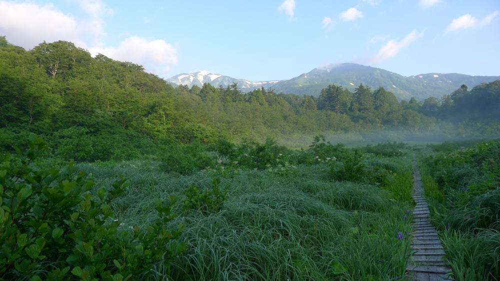 兵馬ノ平からは「朝日岳」の表示に従って再び樹林帯に入る。特に今年は平岩駅からの道路が崩壊し入山者が少ないにも関わらず、登山道はそれはそれは丁寧に手入れされている。今回の登山で新潟県、富山県、長野県の登山道を巡ることになるが、あらゆる観点から新潟県の登山道整備への力の入れようは他を抜いている。それは登山道脇の手入れにも現れているが、登山道に咲く花を区別しきちんと残している。それがショウキランであり、ツバメオモトであり、コケイランでありその他の花々なのであった。これからの道も湿原を通過することが多いのだが、木道の整備も半端ではない。前回ここを通った時はやり過ぎではないかと思ったが、木道脇で競演を繰り広げる高山植物たちを見ると、整備の成果が表れているものと感じられる。