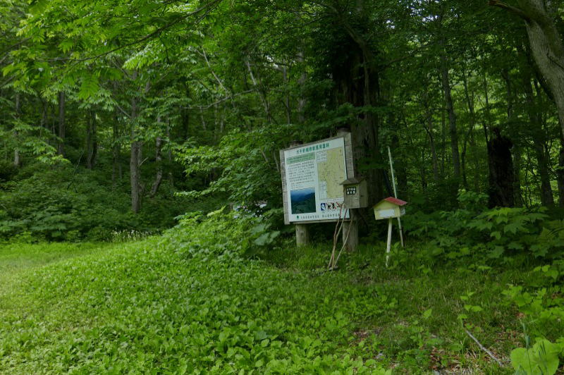 そのようなことで明るいうちに登山口の駐車スペースに着く。登山ボックスの入山届を見ると平日でも2人ほど登山をしているようで、中には大千軒岳の自然環境の維持に尽力している「山歩集団 青い山脈」代表の清水和男さんも今年に入って2回ほど山に登っているようだった。まだ日の入りには早いがビールと日本酒を飲んで、座席のアレンジが利かない日産・NOTEで窮屈な恰好を強いられながら寝込む。一度夜半に目を覚ますと星空が広がっている。もう一度寝込んで日付が変わってしばらくたったころ車のルーフを雨が叩く。「まずいなぁ。天気予報をチェックするため国道まで出るか。」