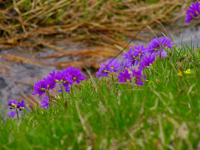 融水に沿って咲くエゾコザクラ