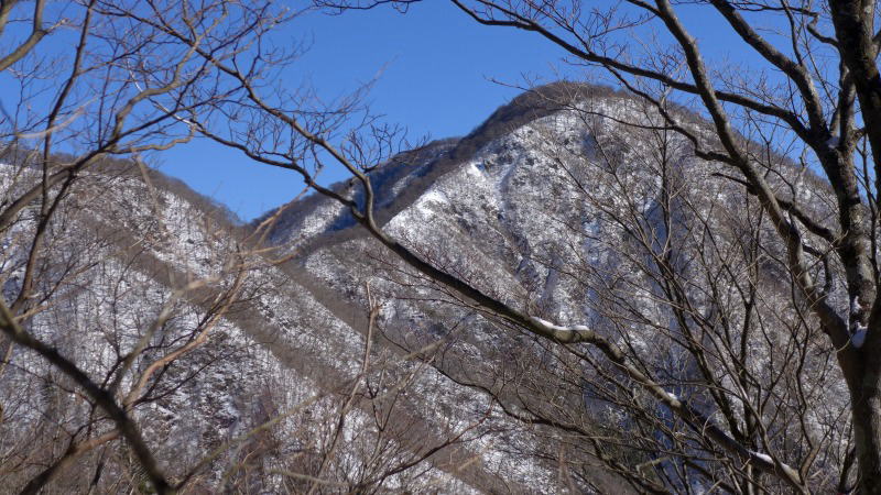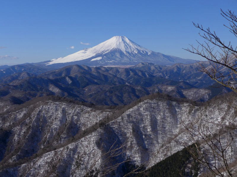 白石峠から標高を下げるごとに雪は少なくなり、白石ノ滝ではほとんど雪を見なくなった。それまでの雪はあっても歩きやすい稜線とは違って、急な斜面にジグを切った岩交じりの滑りやすい道を我慢に我慢を重ねて下りる。ただでさえ足の指が当たる冬用の登山靴のつま先に体重が移動し、痛みを感じる。用木沢出合で林道に出てホッとし、あとは西丹沢自然教室までの道すがら次の山に話の花を咲かせる。