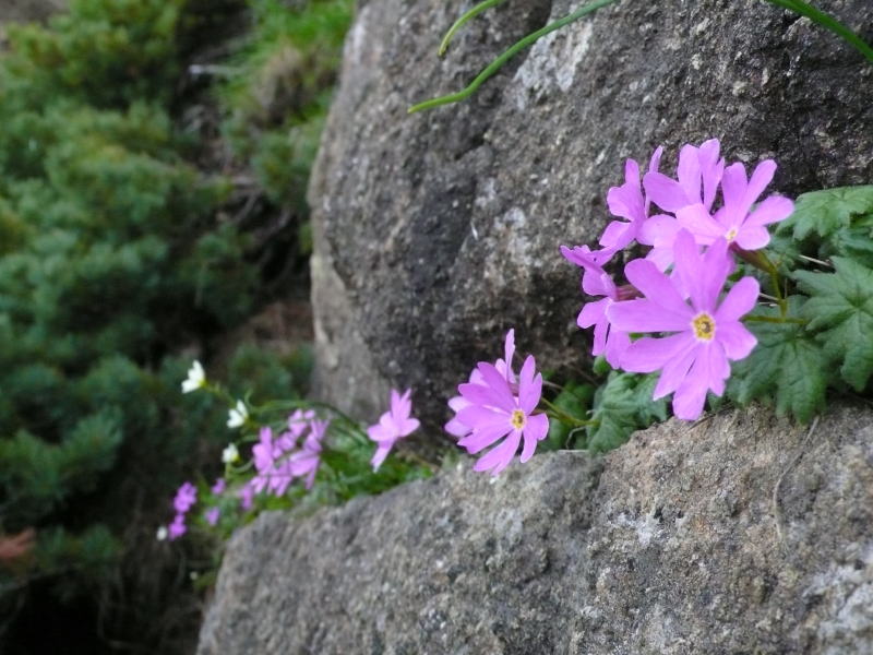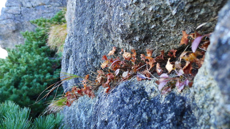 その岩場を過ぎて下る途中、再び「ピチピチ、ピチピチ」とナキウサギの鳴き声が聞こえる。ふっと見上げると、ナキウサギは岩場のテラスでいつまでも私を見送ってくれた。