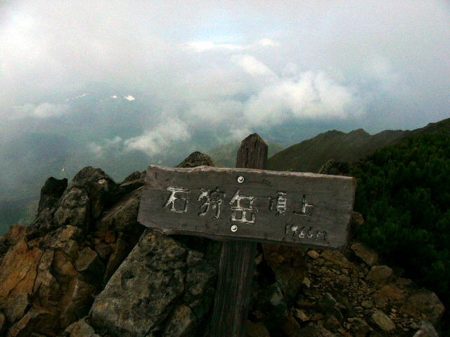 ユニ石狩岳の勇壮な姿,ニペソツ岳の急峻な勇姿,穏やかな表大雪の縦走路などもときおり垣間見ることができ,充実した歩きを楽しむ。音更山に達するころにガスがかかってきて,石狩岳への降り口が判然としない。おおよその見当をつけてガレ場を下ると,そこは筋が少し違うだけで本来の登山道に乗ることができた。