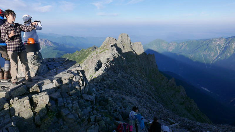 奥穂高岳で若者3人に道を譲る。年寄りは若者を優先しなければならない。経験も大事だが、すでに体力はなくなっている。そういったことを自覚し、今を生きている者を優先する必要がある。ところがこの3人は、最初はビビっていたにもかかわらず、慣れてくるとところ構わず立ち止まって写真を撮りまくる。
