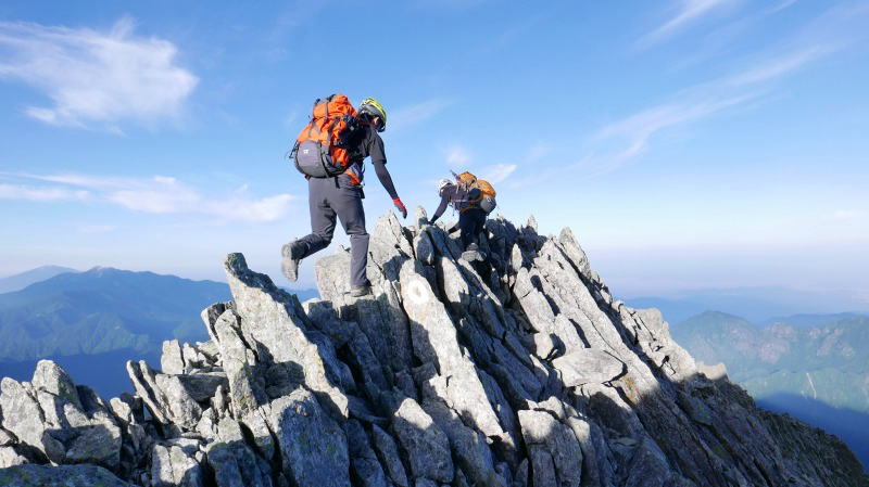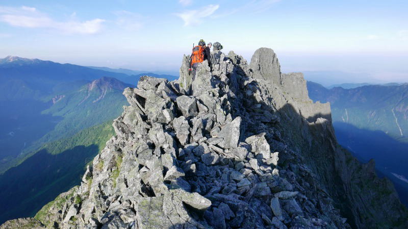 ジャンダルムのピークで緊張する人