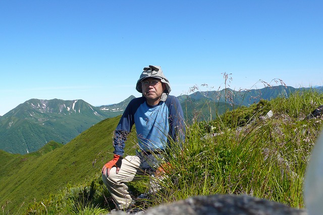 午後4時と言ってもまだ日は高く、風もほとんどないことからテントに入ると暑い。シュラフとカバーを干して一段高い稜線に上がって十勝側に体を置くと、カールから吹き上げられた風が涼しく、しばらくここでまどろむことにした。横になることはできないが、うつらうつらとして夢の世界に入っていく。