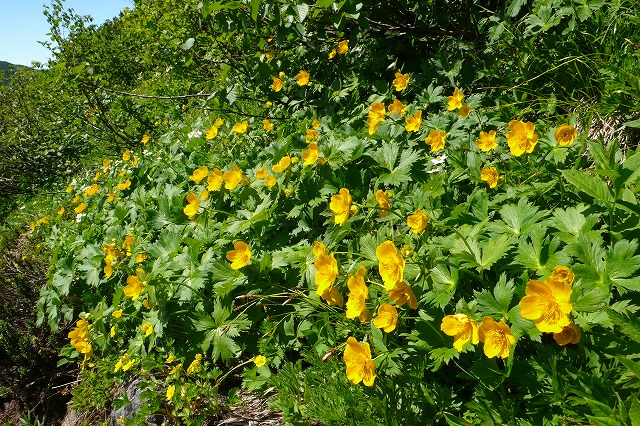 十勝側に出ると例外なくお花畑が出てくる。チシマノキンバイソウだろうか、それともヒダカキンバイソウだろうか、キンバイソウが登山道を被っている。1か所にだけミヤマアズマギクが朝の日を浴びている。エゾミヤマクワガタが可憐な花を咲かせている。エゾキスミレも結構な広がりをもって咲いていて、エゾノハクサンイチゲやエゾツツジはとどまるところを知らない。日高山脈の花園を独占する。