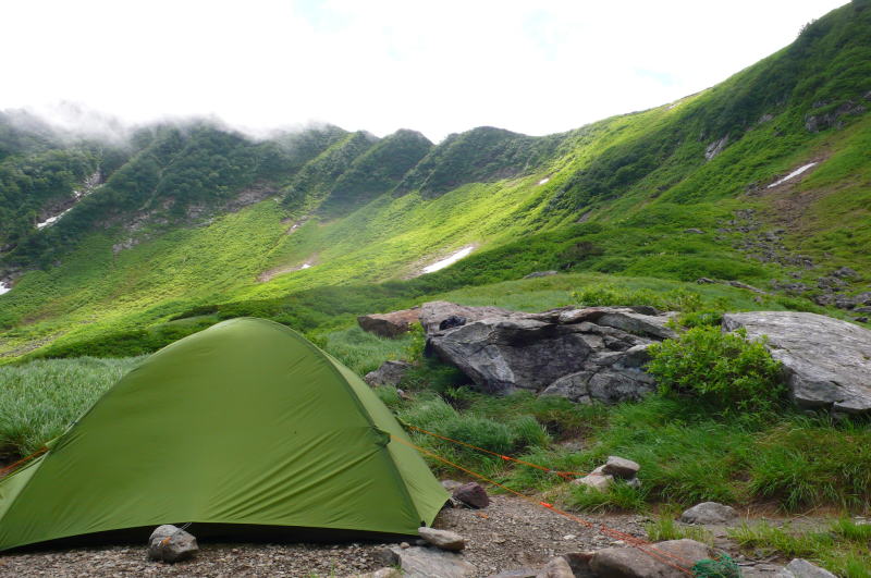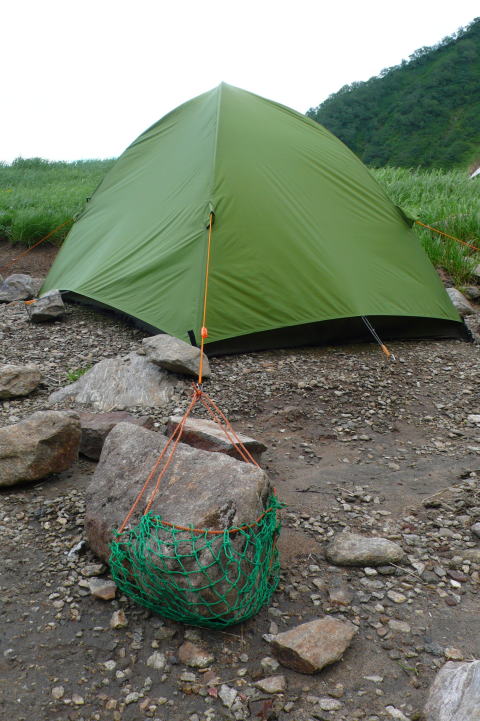 展望のないカムイエクウチカウシ山頂上直下のテントスペース
