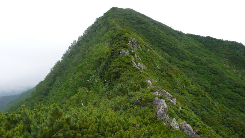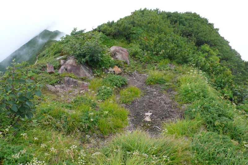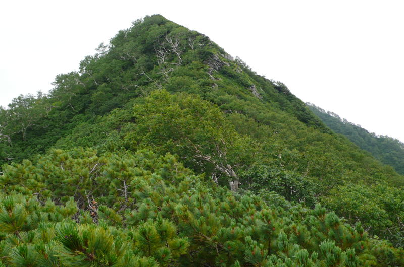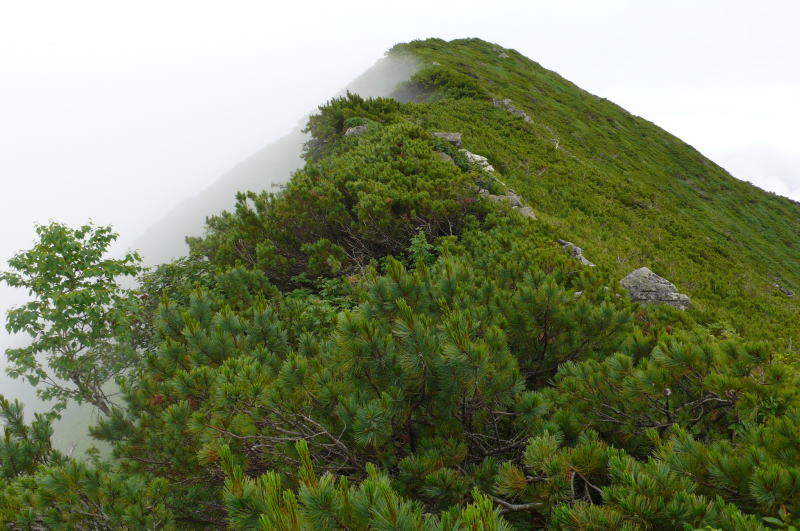 1823峰へ向けてもう一歩 背の高いハイマツが拒むように見えるが、それは画像の悪戯