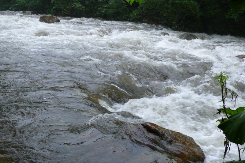 渡渉開始地点から10mほど後退した場所から見る怒涛の流れ この脇にテント設営