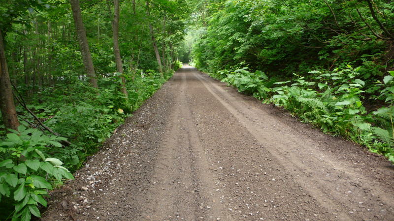 綺麗に整備された林道をもう少し歩いていくと、女性だけの10名近いグループがガイドの案内で歩いて来る。ガイド氏や女性から「どうでしたか。」と問われたので、「いい山でした。1か所だけ深いところがありましたが、もうなんともなくなっていますよ。」と安心感を与えたつもりが、一人の女性の顔付きが変化したところを見ると、言うべきことではなかった、ごめんなさいと心の中で反省する。それにしても、カムイエクウチカウシ山は女性ばかりの山である。「いいな、ニッポンの素晴らしい女性たち。日高の山を十分に堪能してください。」