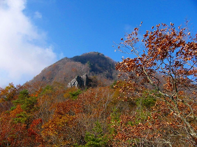 一山越えてそそり立つ岩場が崩壊してできたガレ場に出るが、ここがビランジの群落が見られる場所と思われ、ガレ場の下部に若干の水分が出るようであればヤマシャクヤクがあってもおかしくない雰囲気である。登山道の縁にどのような花が咲くのか、もう草木も枯れていて分からないが、ただ一つトリカブトだけが実をつけていて、秋の早い時期には楽しめるだろうと思われる。