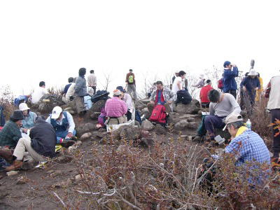 | 観音峠からの尾根筋から | 盛況の茅ヶ岳頂上 |