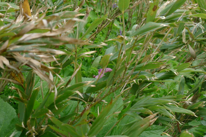 下山路のホテイアツモリソウは囚われの身となったものがほとんどでしたが、それでも孤独を愛する者は、石灰岩の基部に、あるいは笹薮の中に、あるいは笹薮からちょこっと顔を出しています。