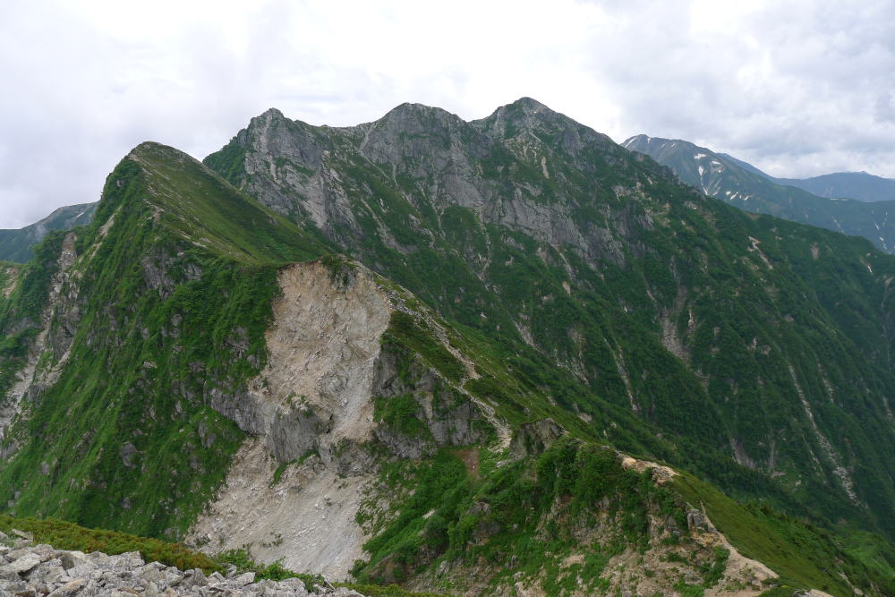 9月も下旬に入ろうとするのに、二俣までの大樺沢には秋の気配がまったくなく、唯一、ノコンギクが花盛りであったことぐらいだろうか。二俣まではガスがかかっていて遠望は利かないが、間もなくガスは取れるだろうと思われる明るさである。二俣から大樺沢をさらに八本歯ノコルへと登って行く。