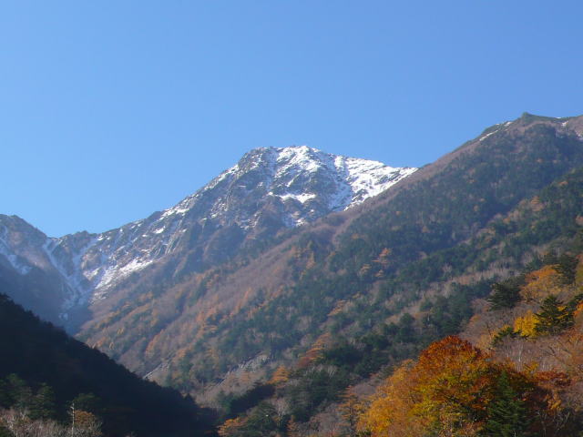 あわてて林道を急ぎ発着場に着くと、バスを待っている人は紅葉狩りの客で一杯だった。タクシーには誰も乗っておらず、運転手さんが寂しげだったのでタクシーに乗ることにした。たった一人の貸切りで断崖を抜けて通る南アルプス林道の山肌の紅葉を楽しみながら芦安に着く。いつもの南アルプス市営「金山沢温泉」で入浴し、余りの心地よさに畳の上でまどろんでいると風をひいてしまったようだ。