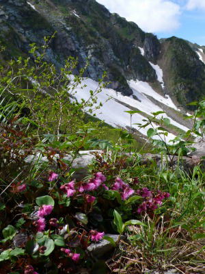 | 北岳バットレス下部とイワカガミ |