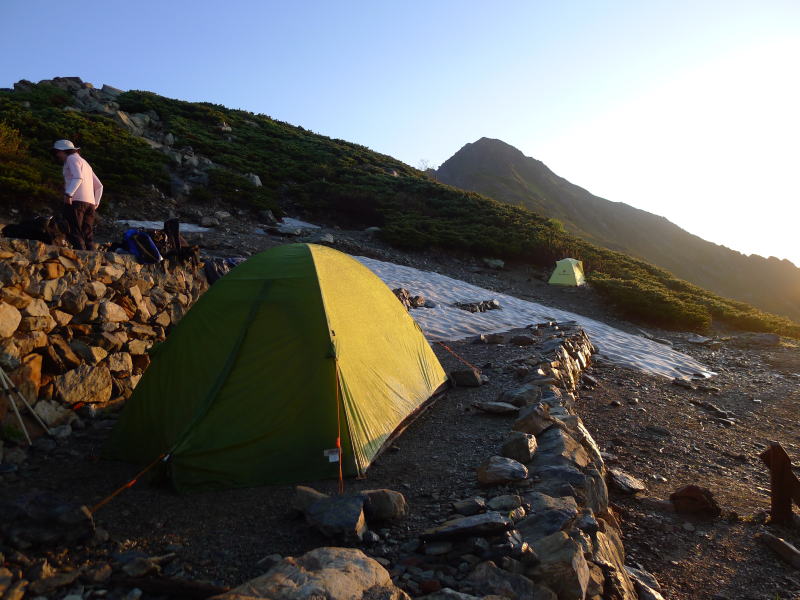 農鳥岳を目指すお隣のテントの人たち