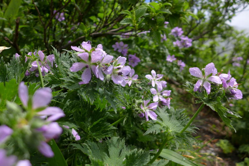 小屋の食事の時間にも、既に間ノ岳に向かっている人は結構いたのです。小屋泊まりの人は朝食をお弁当にしてもらっていましたし、テント泊の人も早めに出発していました。小屋の裏の稜線に出るともうそこからオヤマノエンドウ、ミヤマキンポウゲ、ハクサンイチゲ、ハクサンシャクナゲ、イワウメなどが咲き誇っています。今年の北岳はどうなっているのだろうかと言うほどの花に圧倒されます。