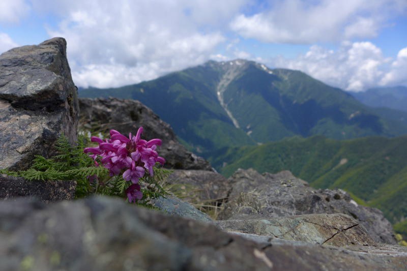千丈ヶ岳とヨツバシオガマ