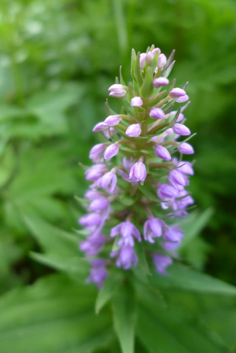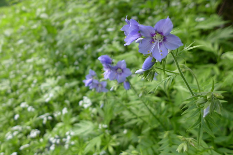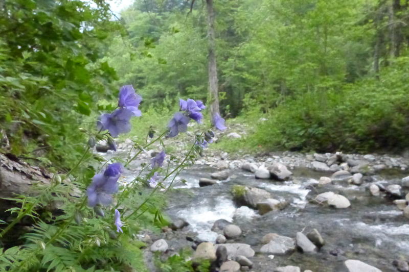 標高を下げるにしたがって周囲が明るくなってくる。下山時の筋肉の活動量の増加もあって汗がたくさん出てくる。早く下山して街に出てさっぱりしたいが、日高の花々が迎えてくれるので二ノ沢に出てからはたびたび足を止めることになる。今年は特にヒダカハナシノブが多く咲いていて、このようなことはかつてなかったことだ。ソラチコザクラが浦幌町で発見されたということは昨年十勝毎日新聞が報じている。同紙によると、「ソラチコザクラは石狩川支流の空知川流域で発見されたのが名の由来。現在は夕張山地東側の空知川流域、日高地方の沙流川、新冠川流域の岩壁に生える。」とのことだが、この地以外にもソラチコザクラの群落があり、このほかヒダカイワザクラやサマニユキワリの知られざる大群落があることはごく一部の愛好家などに知られている。