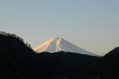 2008年の山登りの締めくくりとして、これまで何度か計画だけをして登ったことのない甲武信ヶ岳にした。当初の予定は西沢渓谷の村営駐車場で前泊し雁坂峠から甲武信ヶ岳に向かう予定であったが、前夜にお酒を飲む機会があった。そこで、出発を当日の朝にし、中央高速経由で登山口に向かった。まだ夜の空けやらぬうちに首都高速に乗ったが、不景気をよそに高速は車が多い。中央高速では初狩サービスエリアから最初の富士山の眺めが得られるので寄り道し、朝日に照らされた富士山の姿を拝む。。