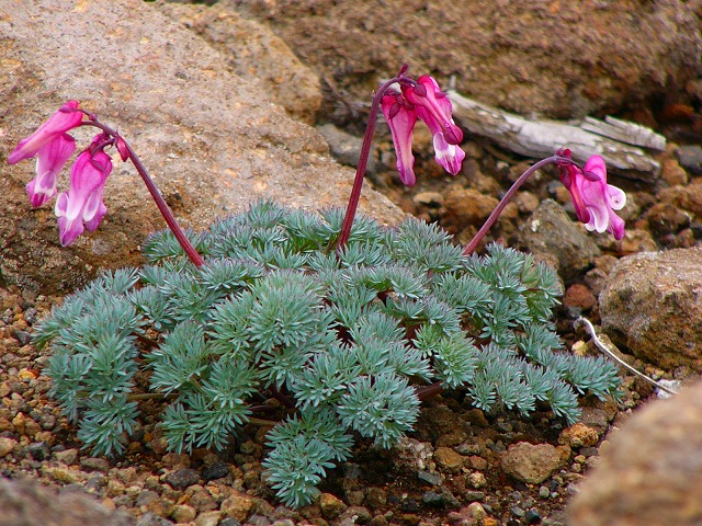第二花苑も雪渓に覆われていて,緑の兆しはなく,やっと駒草平に登ってコマクサに出会う。駒草平は文字どおりコマクサが咲くところではあるが,花期に若干早い。