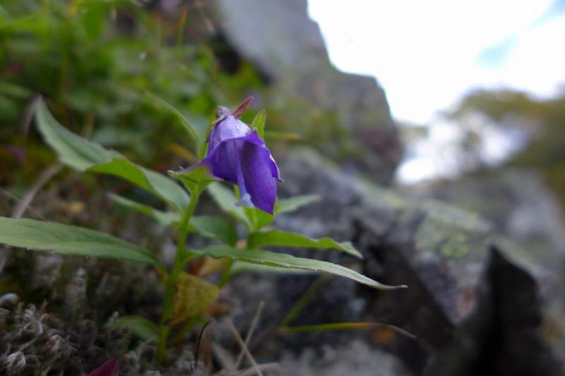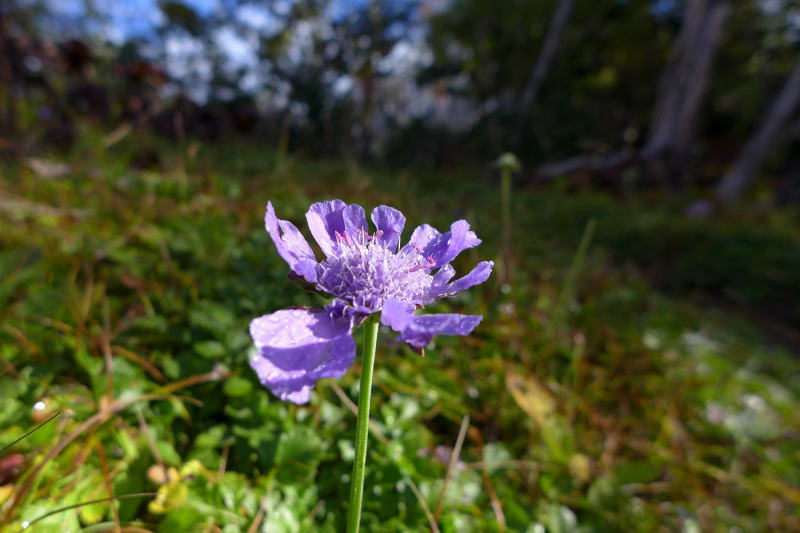 今日は、高山裏避難小屋から三伏峠小屋までの短い行程である。所要時間を6時間40分と見ているので、少しゆっくり出る。というより、ゆっくりし過ぎてしまって最後の出発になる。小屋の北側斜面を登って樹林帯に入る。しばらくは同じような雰囲気の樹林帯歩きが主体となる。板屋岳の少し手前にぽっかり陽が差し込むスペースがあった。そこにタカネマツムシソウが咲いていた。