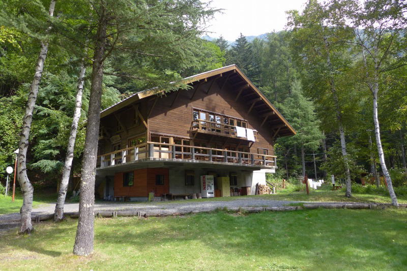 登山口から二軒小屋ロッジに着いたが、チェックインは13:00からということで、小屋前の芝生の広場でそれまで待つことにする。小屋の前には自動販売機があり冷え冷えのビールを買う。一緒に下りてきた二人とベンチを共にする。お二人は午後の送迎便に乗り、今日中に帰宅するということなので一人でビールを、そして差し入れのウィスキーとつまみをいただく。ロッジの周辺環境は申し分なく、夏のバカンスを一人、南アルプスの奥深い場所で過ごしているような感じさえした。