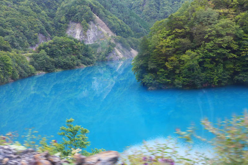 チェックアウトを済ませると、送迎バスに乗り込む。運転手さんは1日目のバスの人と同じ、髭を蓄えたおじさんで、要所要所で説明(ガイド)をしてくれる。今日は、このバスを降りた後に、三伏峠小屋で出会ったトレラン青年を赤石温泉白樺荘で拾ってあげることになっている。山バスが昨日(23日)で終了していて脚がないというので、東名高速新静岡IC近くのバス停まで送ってあげると約束していた。東海フォレストのバスの中から青年と思われる人が走っているのが見える。