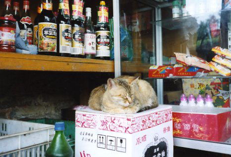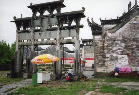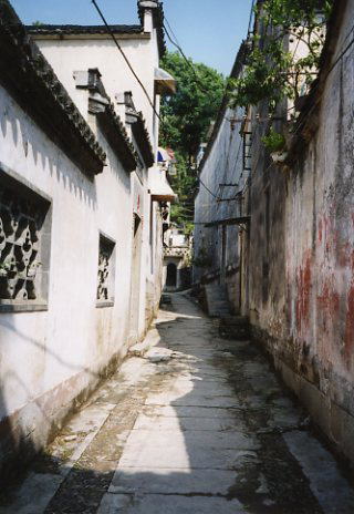 午後は、古街を散策して古い民家を巡り、硯店で硯(20元)を求め、最後に曲廊という建物の唐代の書法家「顔真卿」の手になる石碑などを見て黄山に戻る。長距離バスや列車の駅を訪ねて交通事情を調べ、地元の新聞(0.5元)を一読した後、屯渓の名称「老街(明代から続く商店街)」に三輪バイク(4元)で出かける。ここまで来ると日本人にも会うようになる。