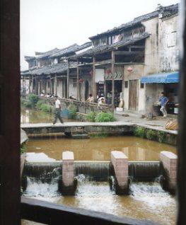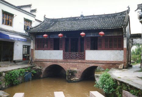 いにしえの建築群、歴史を感じさせる民家。川に架かる橋を兼ねる建物は茶館となっていて、古曲のカラオケに興ずる人たちの中で昼食前のお茶タイム(5元)。その間に昼食の準備が整い、2階を食堂にした商家で、すべて自給だという田舎料理に舌鼓を打つ。なんと8品もある料理は5人では食べきれない。食事代はツアー料金に含まれているが、自分で頼んでも100元とのこと。あ~、なんと中国の田舎の食事は安くておいしいんだろう。これが真のグルメ。