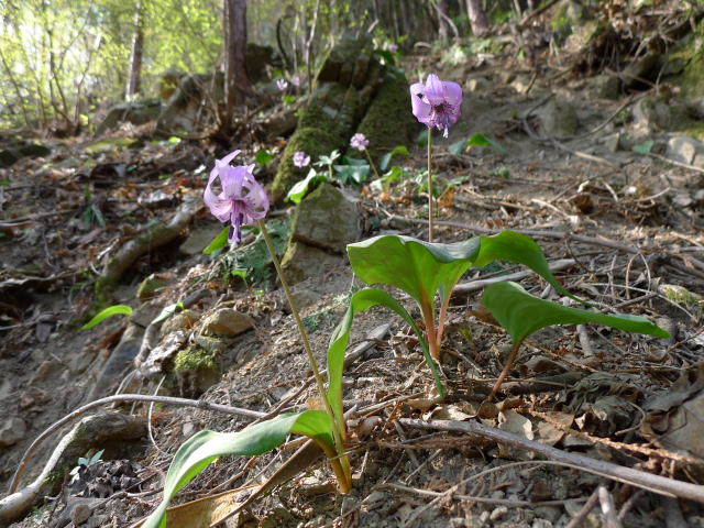 登山道脇のカタクリ