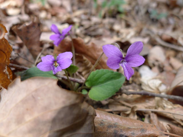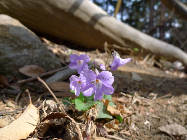 城山手前の倒木にまもられたスミレ