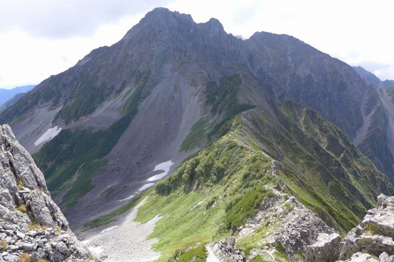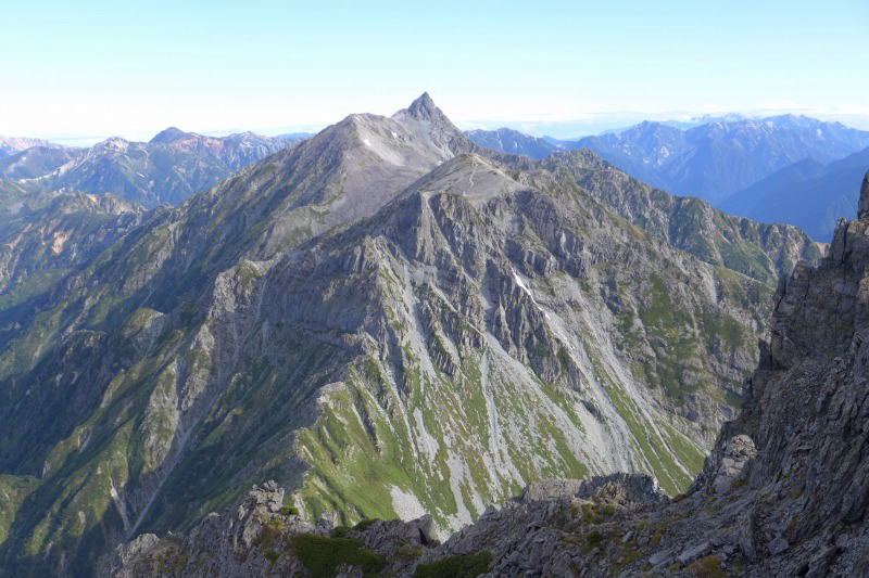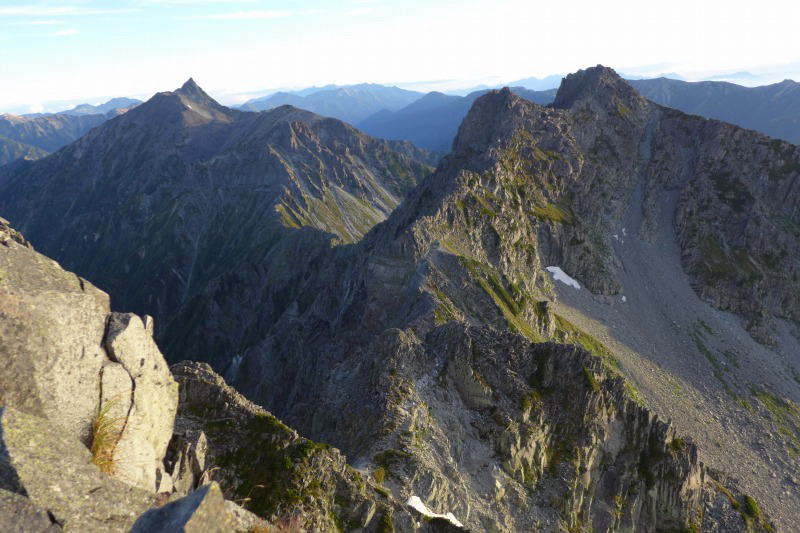 北穂高小屋から大キレットに向けて下降する人が続く。その後を追って飛騨泣き、A沢コル、長谷川ピーク、最低コルと進む(と書いたが、どこがどこだったかのきちっとした認識があったのは最低コルだけか)。すれ違う人から団体さんがいっぱいやってくるよと情報が寄せられたが、もっとも大人数は外国人の20人ほどのグループであった。(やかましいお隣ニーハオの国の人でなくて良かったが槍と殺生ヒュッテでは、自国政府も認める最低なマナーのニーハオ登山者の行状で雰囲気が台無しであった。)
