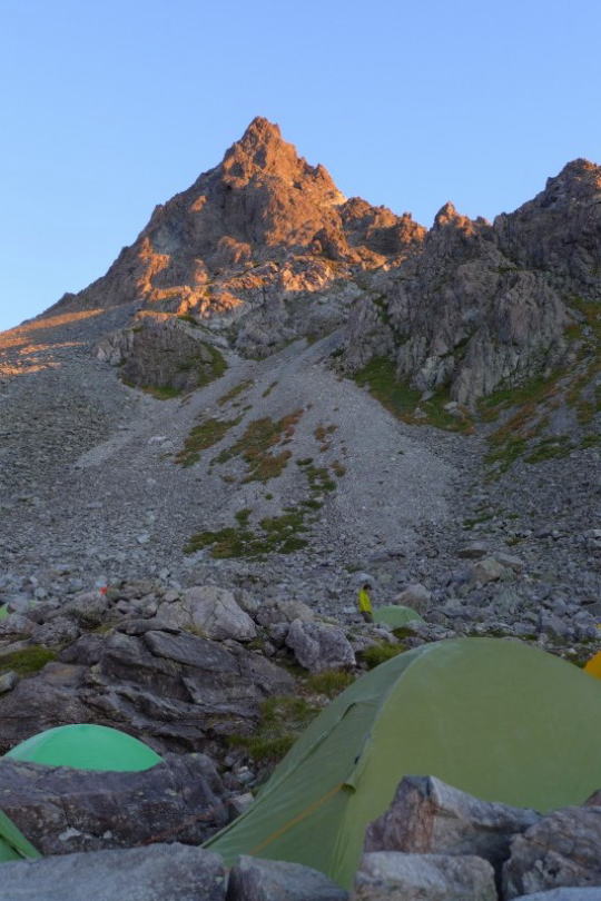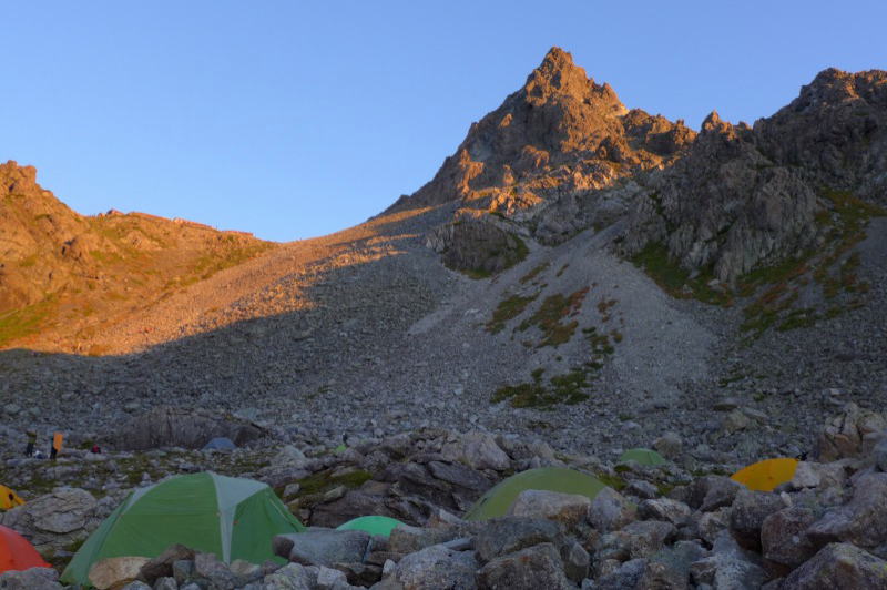 槍ヶ岳とテント場