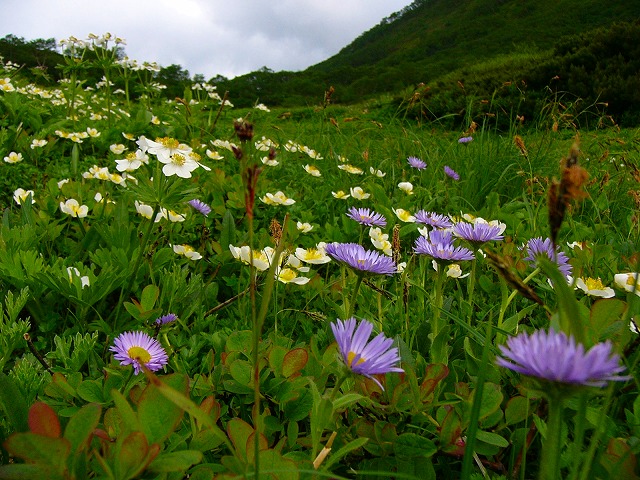 ミヤマアズマギクとチングルマ