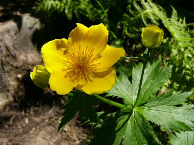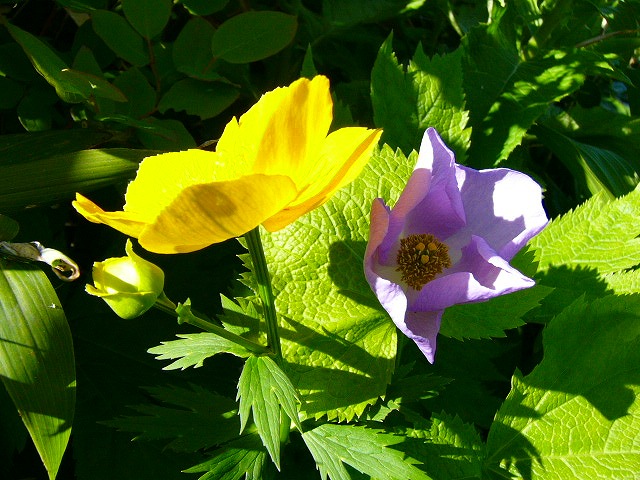 登り始めの道には,咲き終わったツバメオモトやシラネアオイがあるほか,頂上近くになるとヒダカキンバイソウやエゾノツガザクラが盛りを迎えている。クルマユリは登山道脇にポツンポツンと咲いているが,下山する4日後には至るところに花が見られた。伏美岳の頂上に着くと,その先にピパイロ岳,1911が台地状に連なって見える。南側には戸蔦別岳,その陰になって幌尻岳が頂上を見せ,Aカール,Bカールが雪渓を抱いて美しい。(09:40)