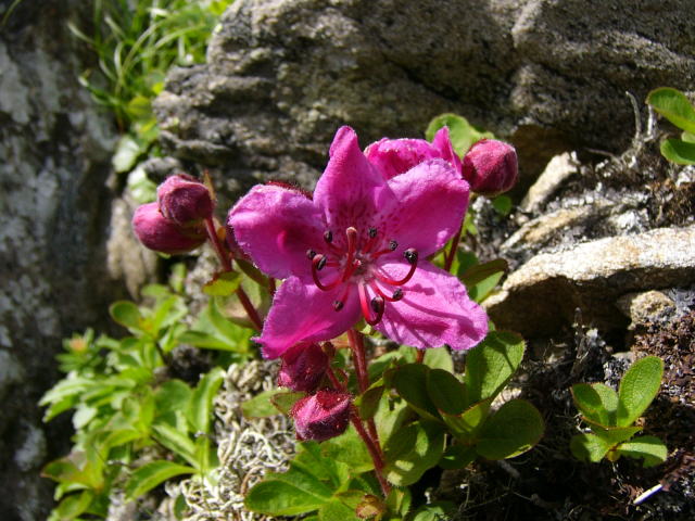 ここのツクモグサの株はその一つ一つが大きく,今年開花しなかった大きな株もあちらこちらに見かけることができた。来年の花の時期には,1967mという秀峰を背景に是非とも花を見てみたいものだ。ツクモグサの植生を越えると間もなく1911m(15:40)のピークとなるが,その間はエゾツツジ,チシマギキョウ,ミヤマシオガマ,タカネオミナエシなどがちょうど見ごろとなっている。