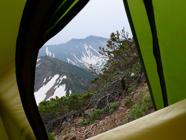 午前2時が予定の起床時間だった。3時には出発して,少なくとも1967mまで,できれば1911mを越えて行くはずだったが,目が覚めたらもう4時になっている。外はまだ暗そうで,風も強く吹いているし,雲も流れていて稜線に当たっている。いつものことながら,このような気象条件では自分の心が急に慎重になって,とうより早めの下山の口実ができてしまう。