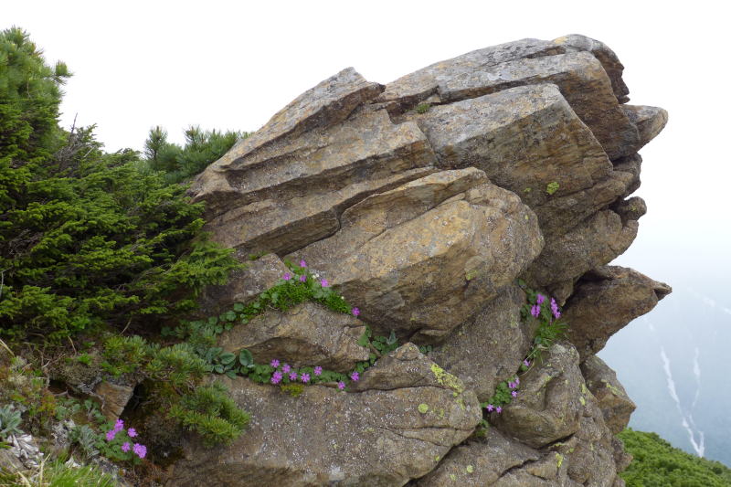 登山道を離れたこの岩場の脇のハイマツを切った理由が分からない