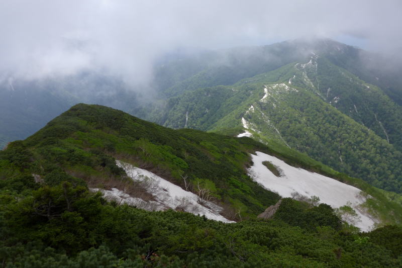 そろそろ下りないと日が暮れてしまう。もうじき雨が降ってくる。連日の登山と長距離運転、貧しい食生活で疲労感も出てきた。汗だくの体を綺麗にして温泉に身を沈めてゆっくりしたい。宿のおいしいご飯を食べてたい。そう、明るいうちに沢を渡り切ってしまったほうがいい。
