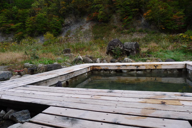 温泉に入ると、ひどくぬるかった。というのも、この温泉は2つのバルブを開閉して源泉を引き入れ、熱ければ川水でうめることになっているし、使用後はバルブを閉めることとされているからなのだった。源泉のバルブを開けるとじゃバーッと勢いよく源泉が流れ出る。熱めのお湯にして一人だけの露天風呂を楽しむ。あれやこれやで1時間も入っていてしまった。