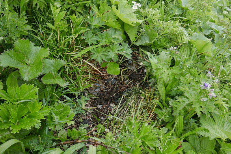 どうにか石灰岩地質のお花畑までたどり着いたが、お花畑が北斜面に方向が変わるところであえなく撤退と判断せざるを得なくなった。貴婦人に逢いたければまた来ればいいじゃないか。しかし、その貴婦人は昨年盗掘されてしまったようだ。ホームページやブログに大平山で貴婦人にあったとかアップされたり、ヤマレコにGPSの軌跡を載せられては泥棒に貴婦人の居場所をみすみす明かしてしまうことになるのに、そんなことも思いつかない人たちには困ったものだ。
