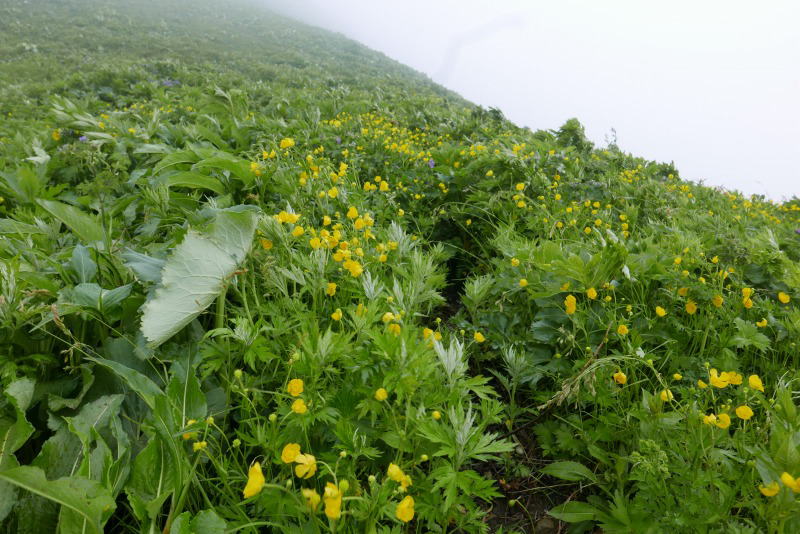 なにがよくて4回も大平山に登るのか。それはそこに素晴らしいお花畑が広がっているからに他ならない。本州の山では考えられない高山植物の絨毯を見ながら歩くことができる静かな山、大平山。しかし今回は花の写真を撮る状況でもはなく、そのうちに手が寒さでかじかんでくる。冬用のグローブを準備してきた。万一のためにダウンのインナーの上下も持ってきた。しかし、いったん体が冷えたらどこでダウンを着用せよというのか。山全体が雨を伴う強風に晒されていて逃げ場がない。