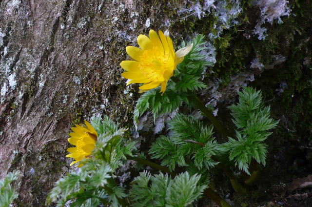 降りつける雨で、下着も登山靴の中も、ゴアッテックスの防寒手袋もびしょ濡れとなっている。体が冷えて体温の再生産は効かなくなってきた。我慢に我慢を重ね川俣の集落を目指し、苔で滑りやすい沢を下る。どうにか集落に出ると雨も止んできた。外に出ているおじいさんが「こんなに早く下りて来て、どこに行っていた。」と聞くので、酉谷山から下りて来てフクジュソウを見てきたと言う。おじいさんは川俣に住んでいながら足が悪くて、これまで一度もフクジュソウを見に行ったことがないとのことであった。「フクジュソウはきれいでしたよ。」