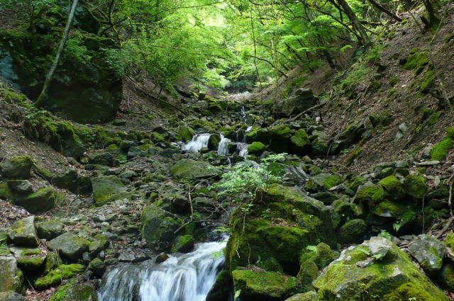 さて、今日の暑さは格別だ。それは気温だけではなく、大ドッケまでの標高差600余mの沢登りのせいもあり、また、寝袋などの泊まり装備のせいもあるだろう。うっそうと茂った木々で陽の差し込まない沢を淡々と登る。しかし、目は周囲の植生を丹念に追って行く。